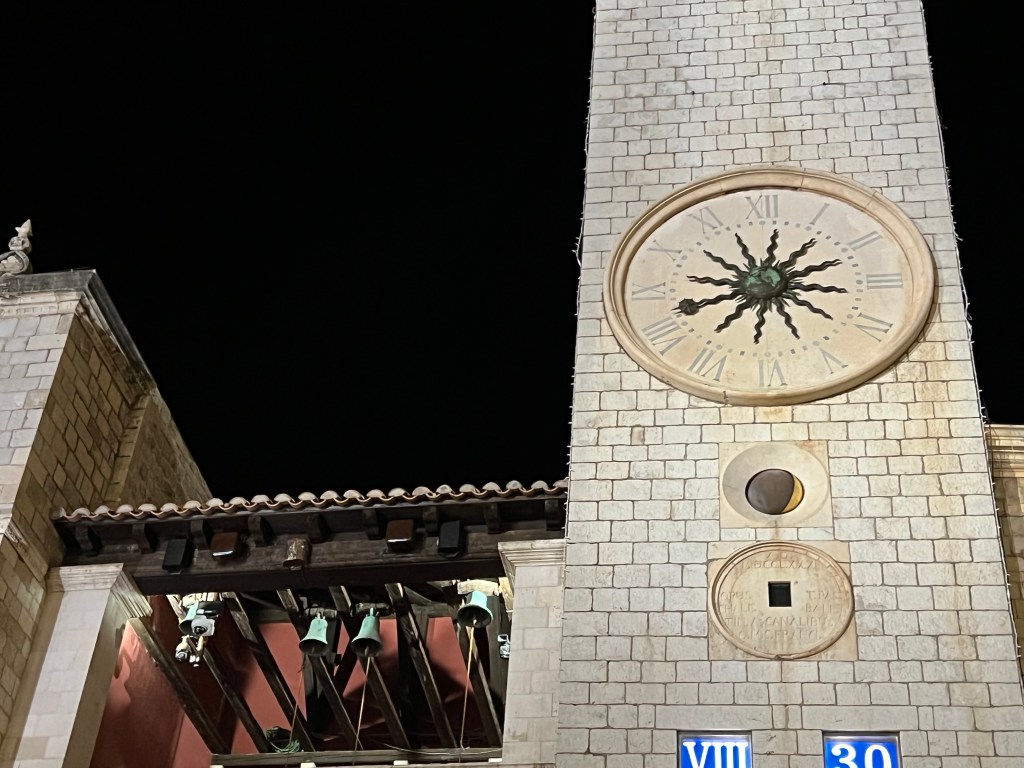 The Old Town of Dubrovnik is actually quite small. We wandered around a bit, found a lovely restaurant for dinner where we drank Croatian Prosecco and Syrah. I had the most amazing risotto with scallops and exactly the right amount of truffle. I am very mixed on truffle flavour on the norm, but this was a real treat. Rick had mackerel and black ravioli stuffed with prawn, also amazing. The wines were both impressive though small production means it is hard to get most of them outside of Croatia.
