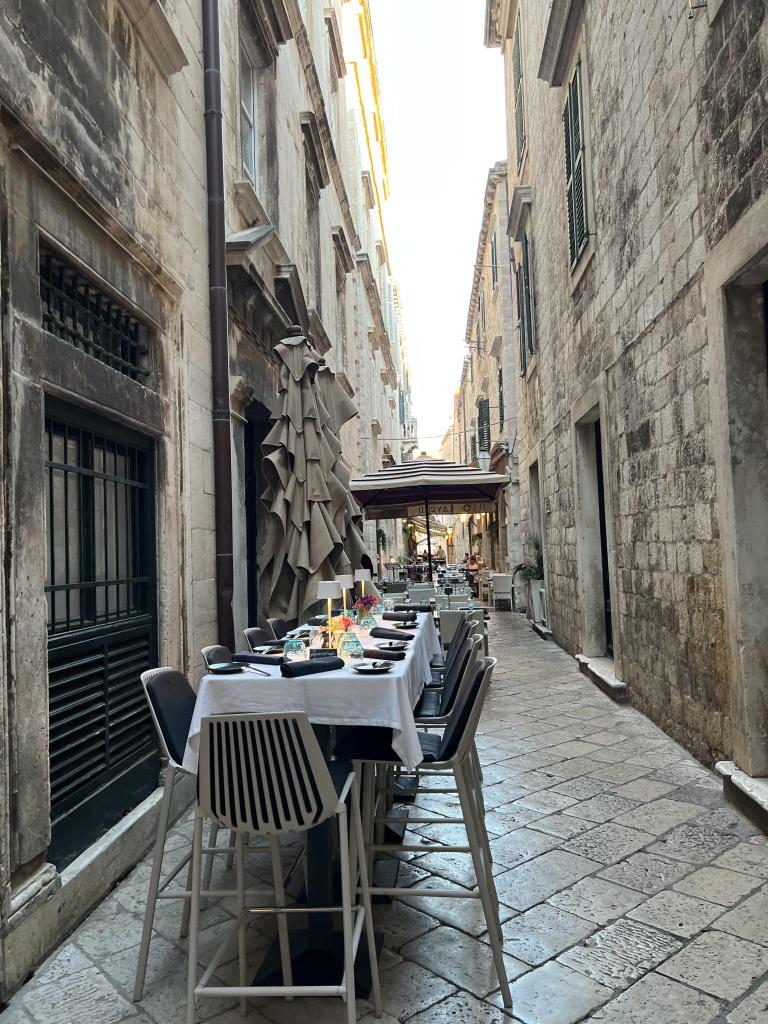 I will say, we were a bit disappointed with Lufthansa (my heart is broken). The seats were ok, but it was a newer plane with a little less space – even in premium economy. The food was very poor – not what I expect from Lufthansa – so I nibbled at a few things but that was it. The entertainment system was not working so it was a loooooong 9 hours. We both slept a bit, but arrived in Munich a bit disgruntled and very tired. Although we had to walk to the far end of the airport to get our connection, it was easy, and we were actually in Dubrovnik about 1.5 hours later.