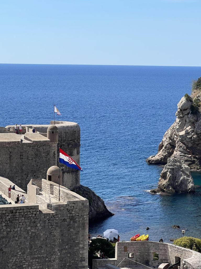 Along the way we passed a few ‘beaches’ which, in Dubrovnik, essentially consist of a platform carved out of the rock with a small metal set of stairs to get you up and down the rocks, and an even smaller set to climb out of the water. These rock beaches were incredibly popular, and all of them were crowded with people sunning and swimming.