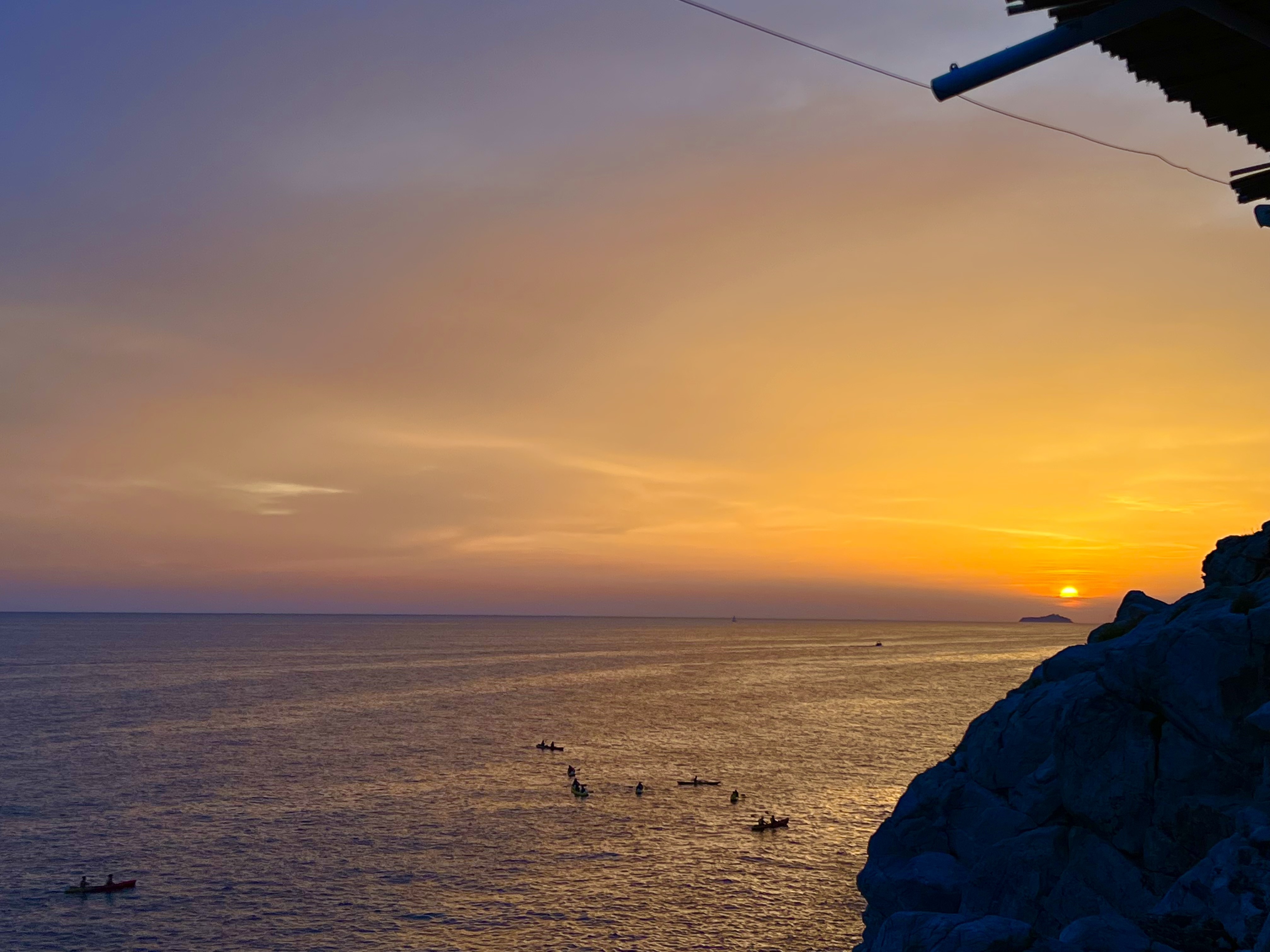 People were perched all along the rocks below the wall to watch the setting sun. A number of kayaking groups were out trying to capture the moment. I took several photos, however, on reflection, our Ucluelet sunsets are at least as nice.