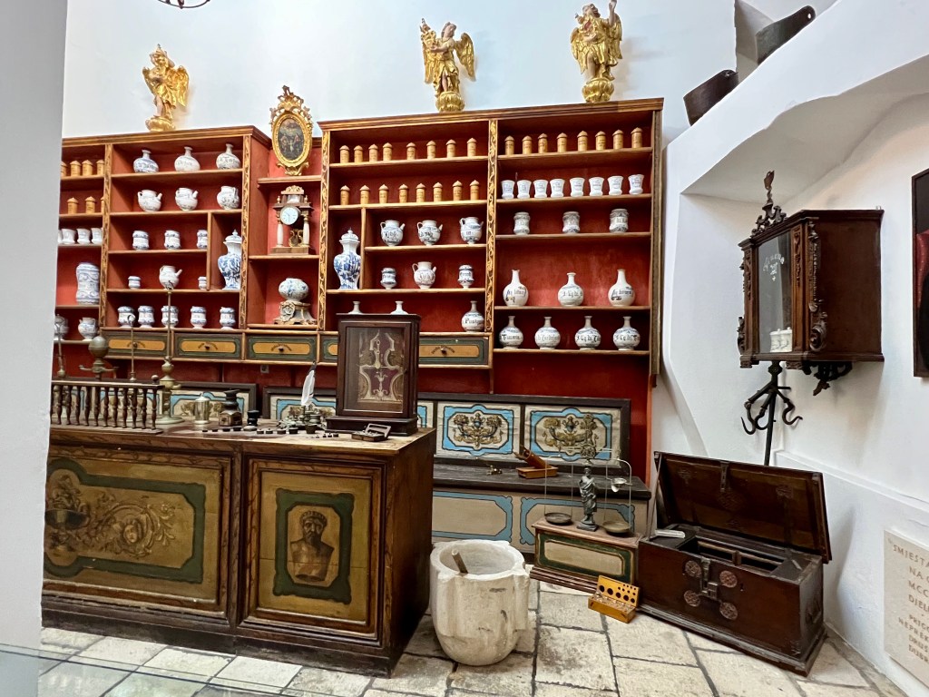 The cloisters were also beautiful and there were some interesting artifacts. In the end, beyond longevity, the pharmacy was.. well … a pharmacy albeit with some old fashioned scales and equipment.