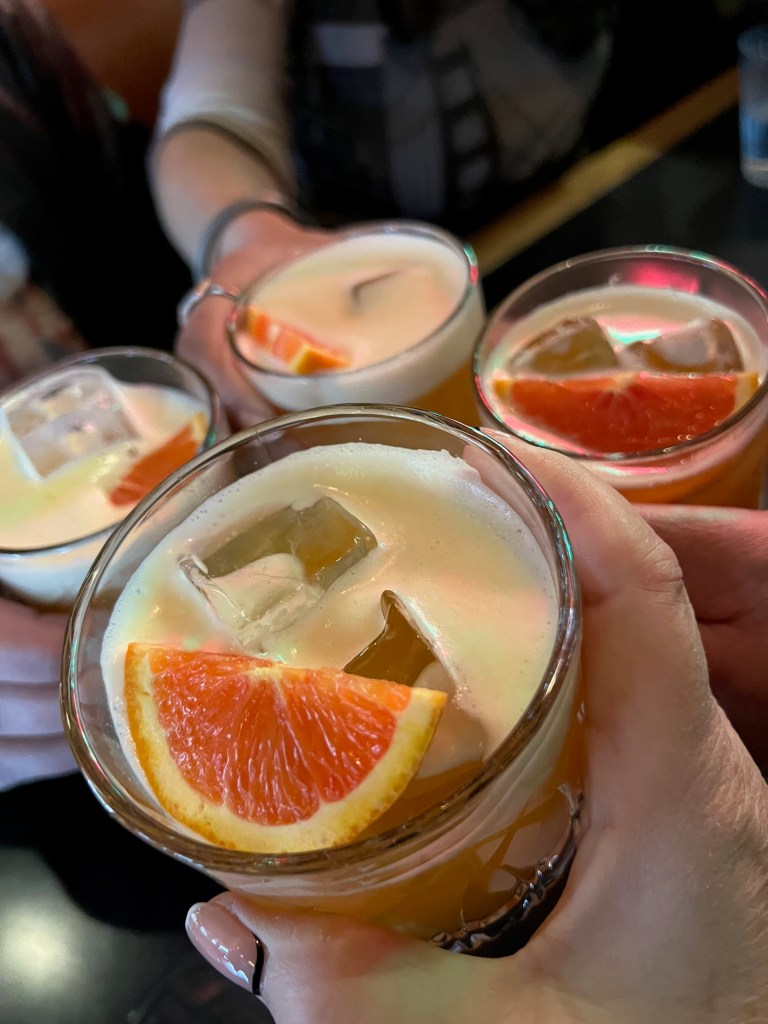Our first cocktail arrived moments later: a Fluffy Disaronno with Orange Juice. I have to say – it was delicious! It was a light cocktail that loosely resembled an Orange Julius, adapted for adults. If I could have had 2 of them, I would have! That is really saying something considering that orange juice and I have not had a good relationship for several years; I tend to give it a pass beyond a bit of orange peel in my Old Fashioned or a small splash in an occasional Mimosa.