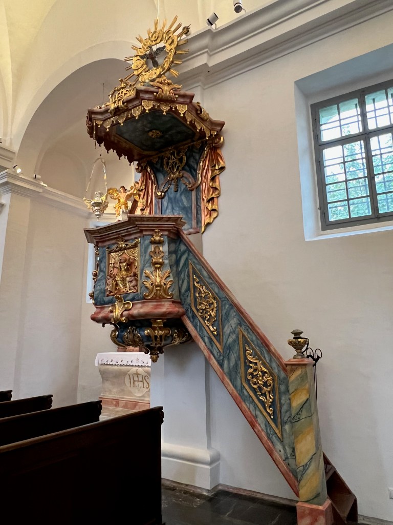 Today’s adventure – Lake Bled. Early breakfast, short drive, rained the entire way though we started out with a peek-a-boo blue sky prompting us to bring our entirely unused sunglasses.