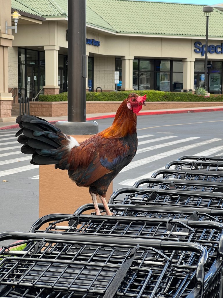 And look who we found in the parking lot? In fact there were a couple of roosters, a number of hens and several chicks roaming around looking for snacks. We sent photos off to the grand-daughters confident of their appreciation given their love of chickens.