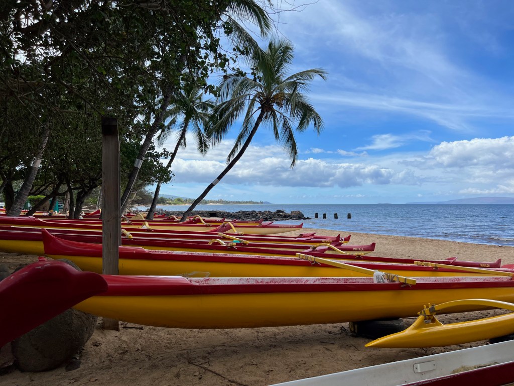 Rick was out early for his rowing adventure. It seems he had a good time in a boat with 3 women, 2 from Vancouver. (Should I be calling it a canoe? Yep – outrigger canoes, or Wa’a.)
