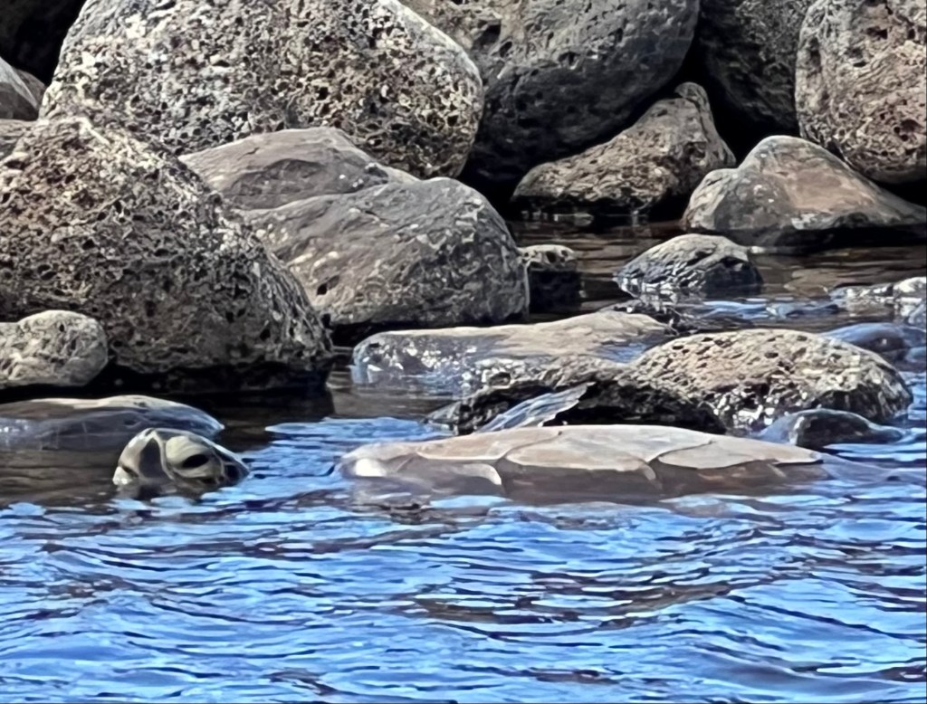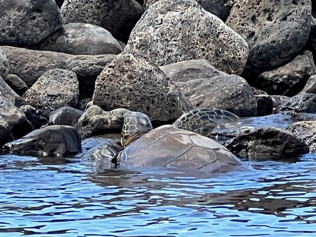 In this case, left was definitely a great choice as they rowed past Kalepolepo, a section of beach surrounded by a man-made stone breakwater and home to a bunch of green sea turtles.