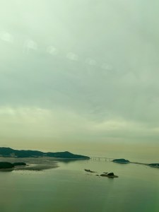 It was a bit bumpy flying into Incheon – but nothing my 12 hour gravol and I could not handle together. The skies were overcast but the scenery would have been lovely on a sunny day. There were so many little islands and bridges. Just beautiful even on a drab day.