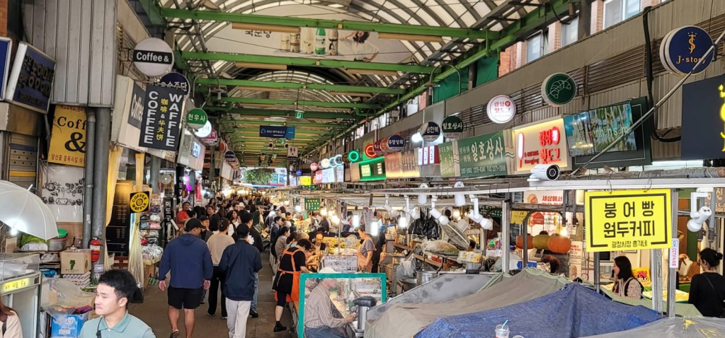 Our first stop was the Gwangjan market. Primarily filled with small food stalls, there is also a healthy collection of tiny shops and stalls around the edges of the market and in the surrounding streets. You can buy everything from toothpaste to t-shirts.
