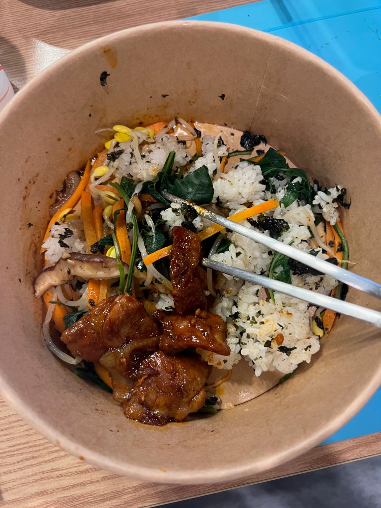 The end result was quite delicious. Unfortunately I had in my head that we would be making kimbap, Attorney Woo’s favourite food from the Netflix show. No way I was going home without enjoying her favourite food. The first photo below is the bibimbap we made and the second photo is my lunch from today, the kimbap I was so keen to try. There seem to be a number of ‘baps’ but so far they have all been delicious!