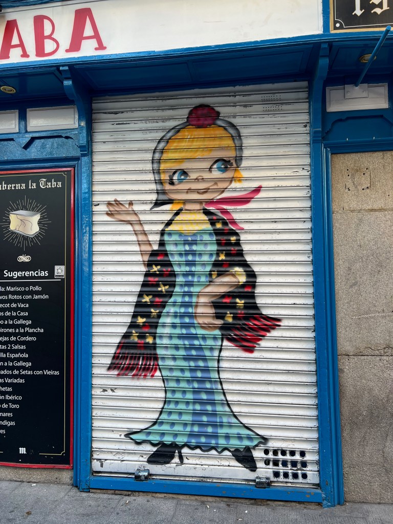 The streets were quiet; hardly anyone out at the early hour of 11:00 a.m. There were beautiful buildings, fun street art and a shop selling “jamon” on almost every block. Seriously.