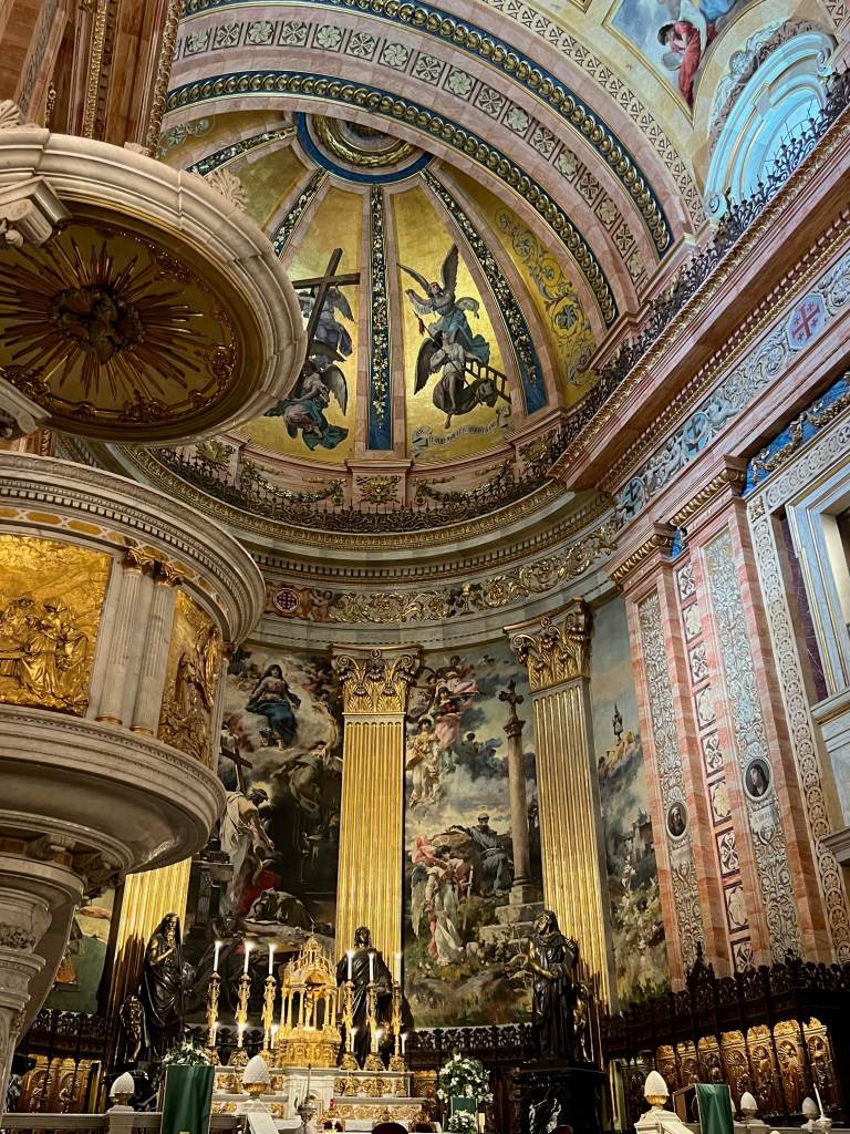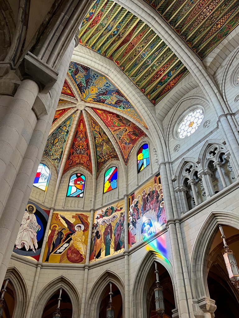 Our intention was to start at Catedral de la Almudena, and we were very happy to see it appearing in front of us. It was beautiful inside, filled with amazing art and figurines, all glorifying God and the Virgin Mary.