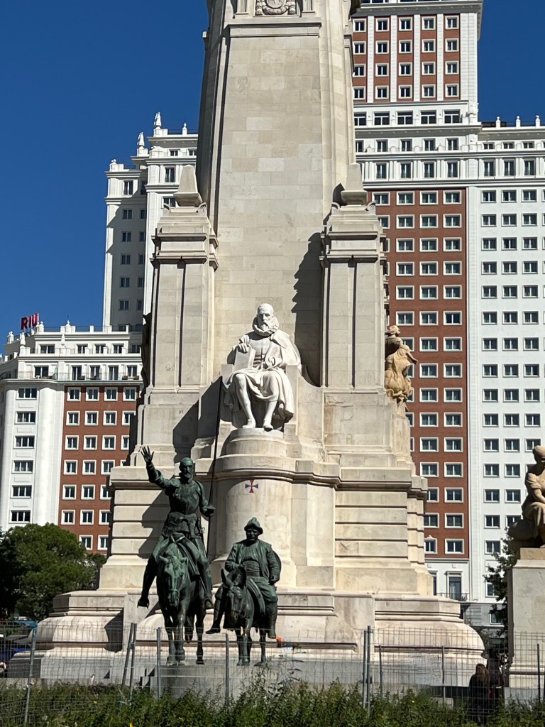 Next stop – The Plaza de Espana. It contains a beautiful monument by Cervantes, complete with a statue of Don Quixote and Sancho Panza overlooking a large rectangular pond. Sadly, we had trouble finding it as the pond no longer exists, and the statue is slightly hidden by a wall of fencing and overgrown weeds.