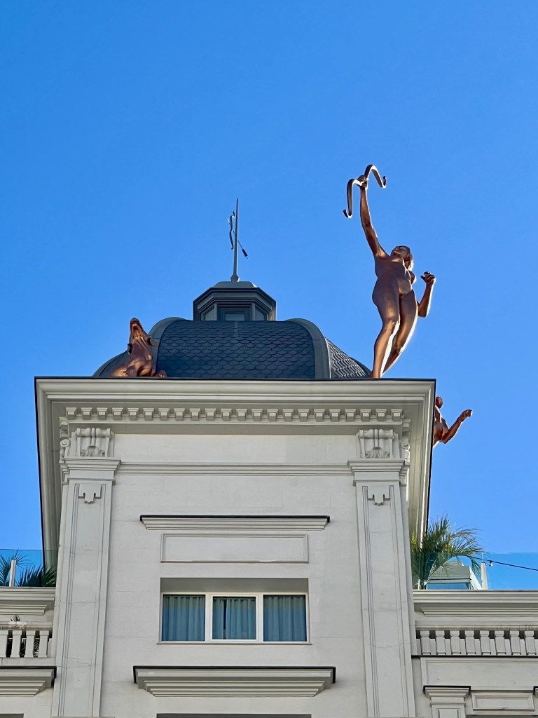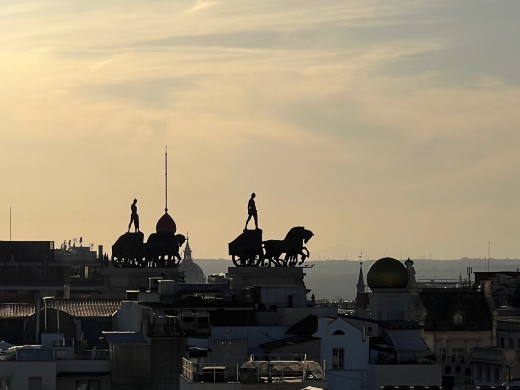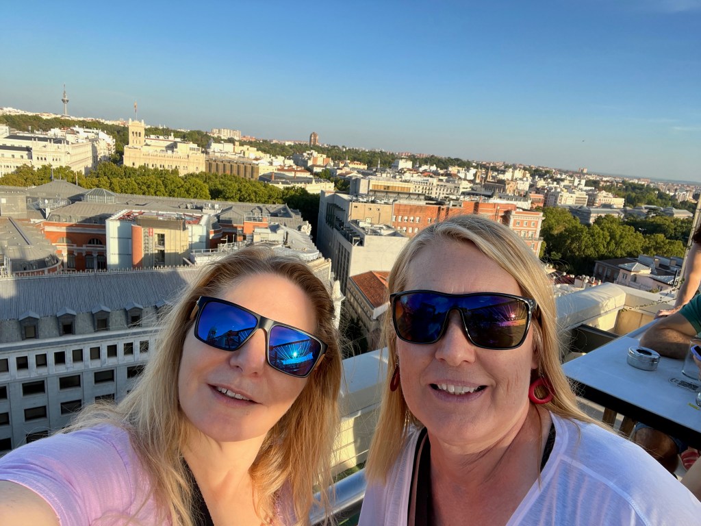 Many steps later we had crisscrossed the centre of Madrid to arrive at the Circulo de Belles Artes. We waited a bit to take the elevator up to the rooftop bar. The vibe was young and the music was techno, which basically sounds like the same song on repeat to me.