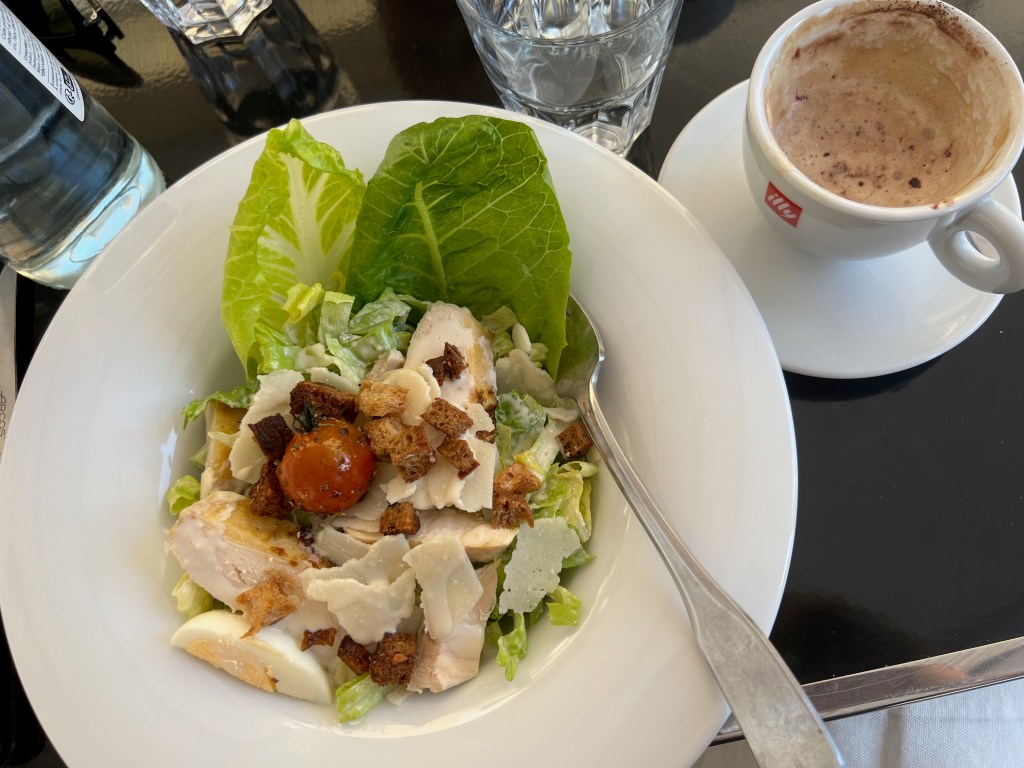 By this time we were ready for a coffee and ended up eating a much appreciated salad for lunch in the square at the top. (Unknowingly we had ordered our lunch at the same restaurant where we had enjoyed dinner the night before). It was so tasty, I had to include a photo.