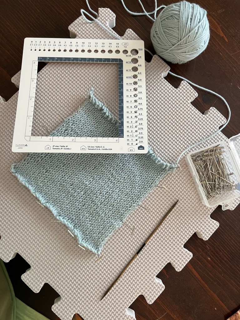 I actually did a swatch, which is always recommended to ensure the finished garment is right size. This does not matter much with a shawl, a blanket or a hat, but it is everything with a sweater.