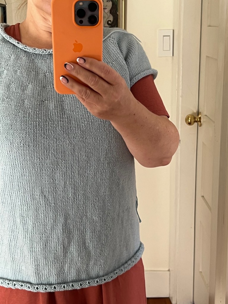 Finally, on a Sunday morning with the day open ahead, I could not put it off any longer – time for the sleeves. Adding the first sleeve was a breeze. Seriously. Who knew? The second, equally easy. Within a week the sweater was finished. I sewed in the few ends, and voila!