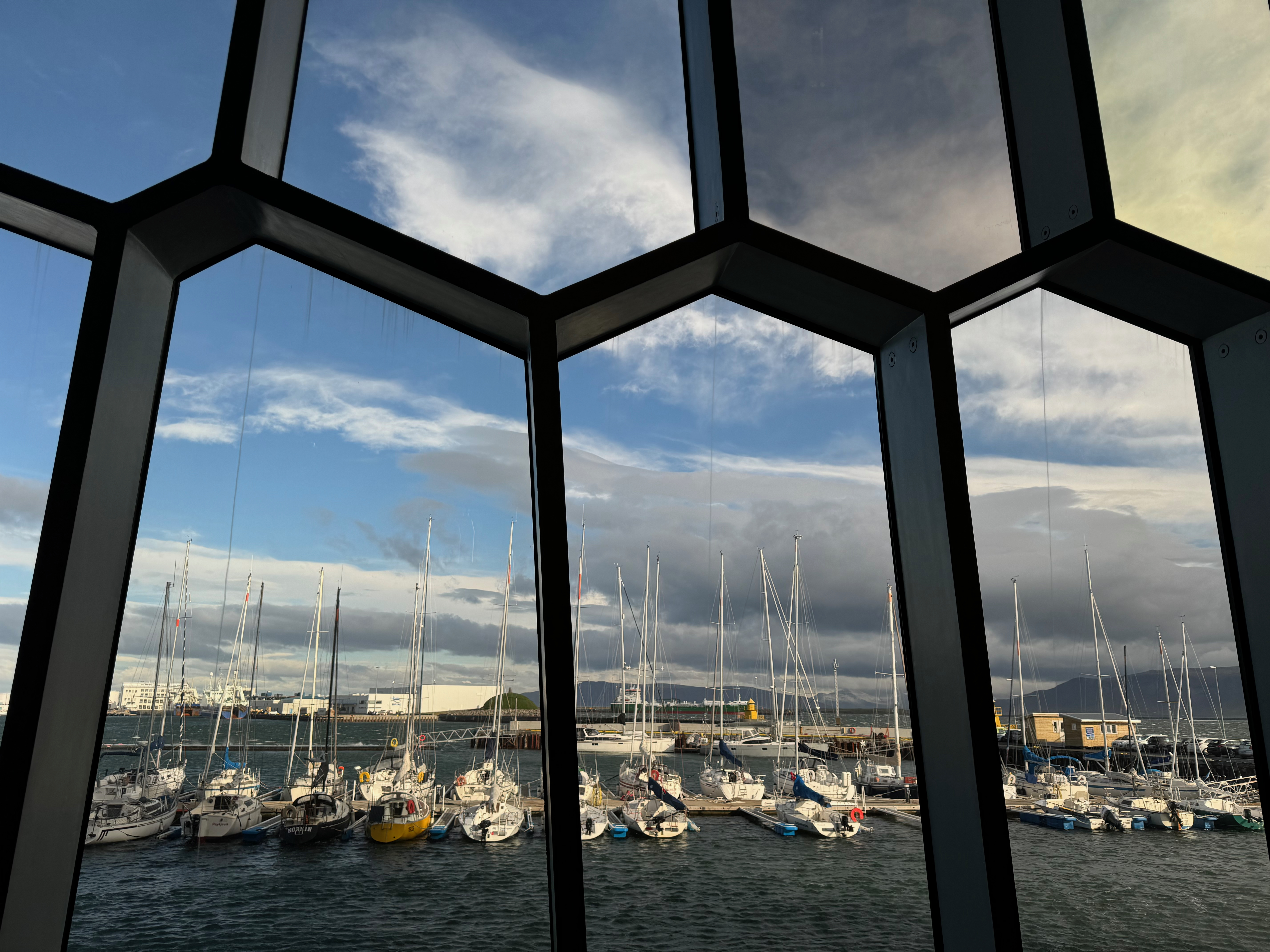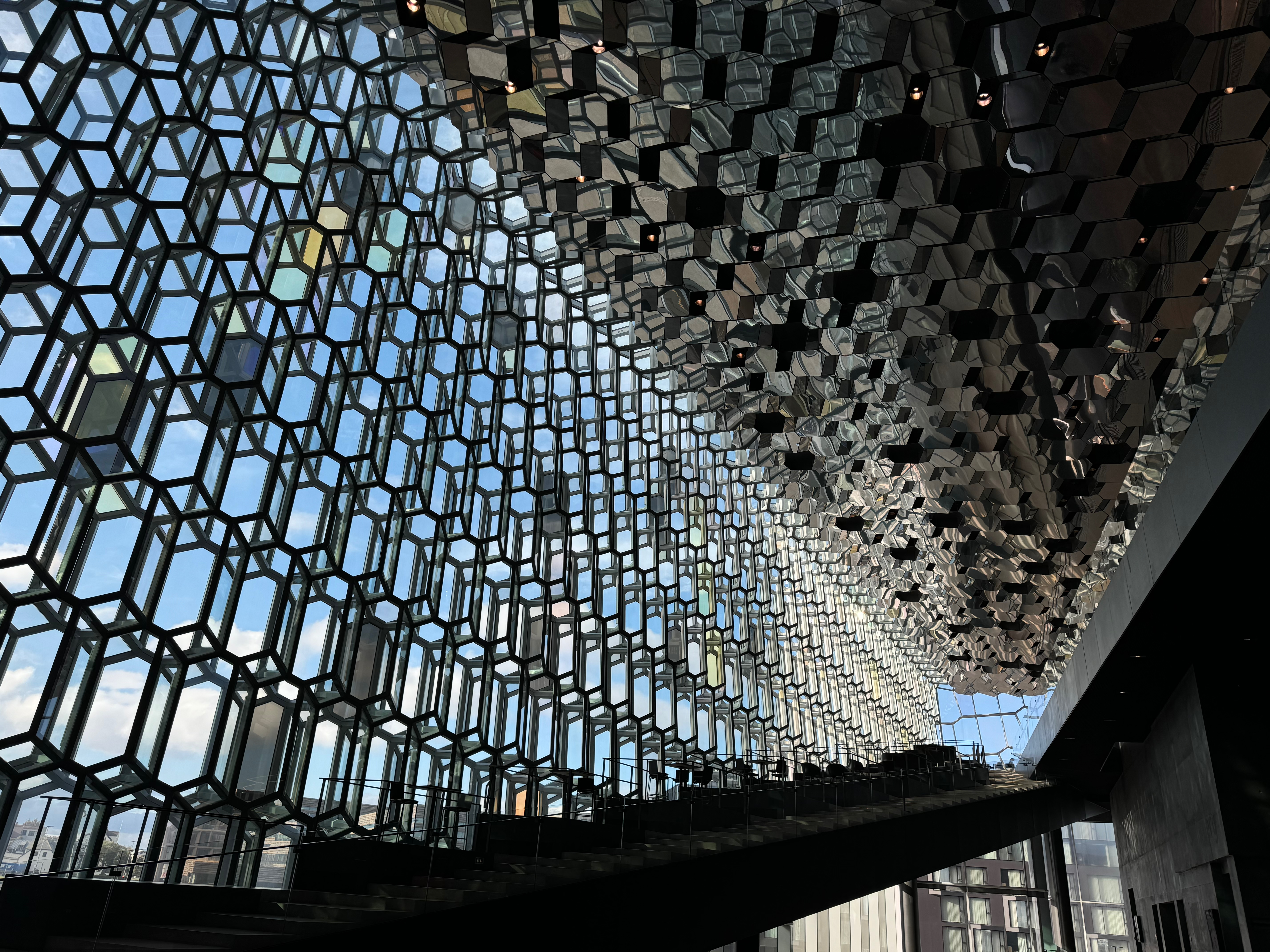 From there we went to Harpa, a stunning concert hall located right at the water’s edge. It is used by the Icelandic Symphony and Opera as well as visiting entertainers. There wasn’t much going on today, but the architecture is really spectacular with its black and glass interior.