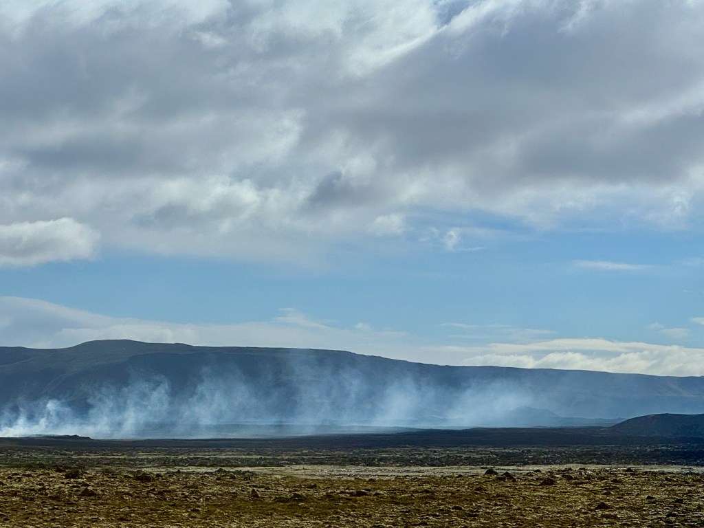 The return trip to the hotel was very, very quiet as everyone happily snoozed after lengthy our warm water dip. I did manage to get a better photo of the steaming lava flow.