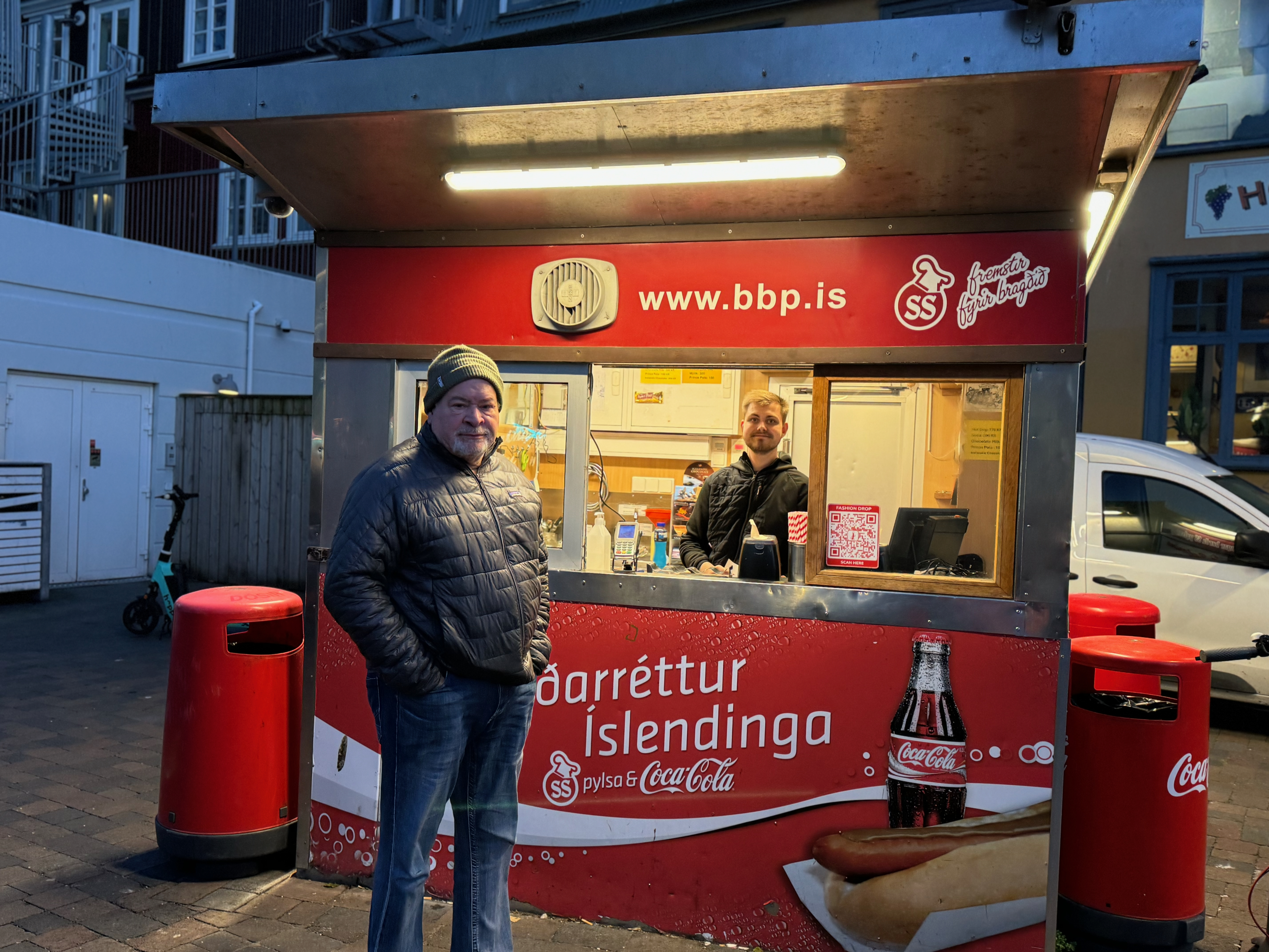 After a very brief stop over in our hotel room we decided to walk to the famous hot dog place, more of a food truck than a restaurant. We timed our departure so that our return might be late enough ,and dark enough, to hopefully catch the northern lights which had a high probability of appearing. Spoiler alert – not tonight. At least not during the time window of our consciousness. Our guide has reassured us that there is a high possibility we will see northern lights at some point on this trip, though they are famously unpredictable.