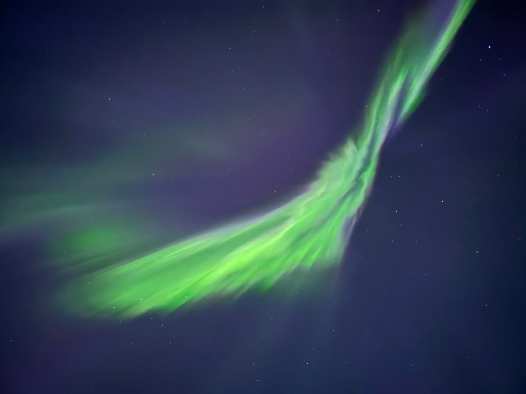 1. Yep – we had them again – Day 2 Northern Lights. Thanks to Rick’s tracking app we were out there for the show