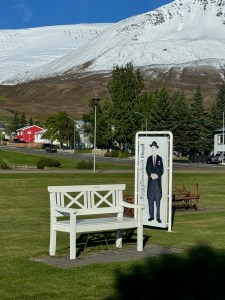 Johann retired in Florida, returning to Dalvik after he was injured in a fall. He died only a few months later in November 1984, at the age of 71. We passed a large picture of him, next to his custom-built bench, on our way through town.