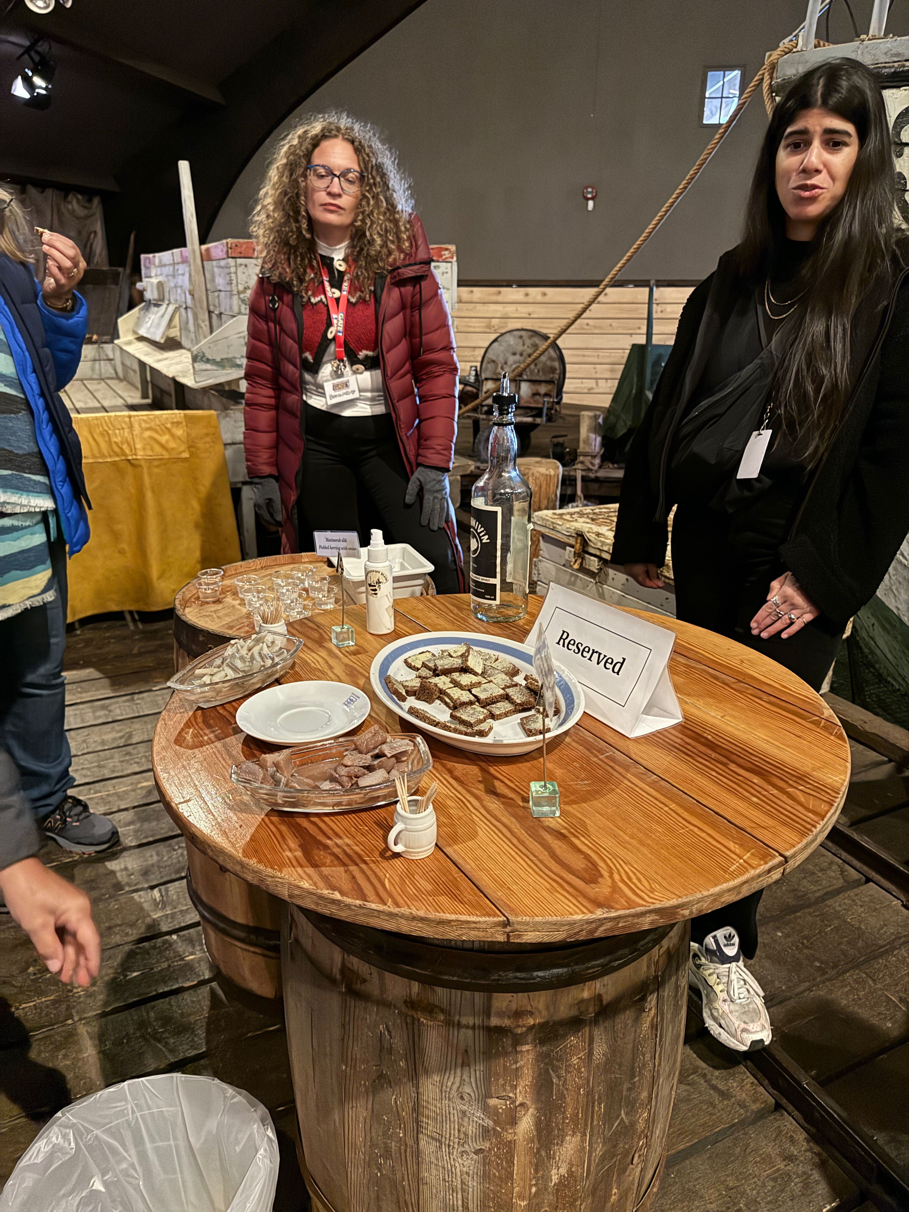 After the tour we had an opportunity to sample some pickled herring. One version was pickled only with onions and the other included some spices, primarily cinnamon, in the pickling juice. Black Death liquor and rye bread were provided alongside – similar to the fermented shark tasting. I must say I really enjoyed the first version and went back for some additional samples. I vaguely recall Mom and Dad having jars of pickled herring in the fridge. I did not appreciate the look of the shiny skin, though I may have eaten them at some point. I think they were called rollmops?