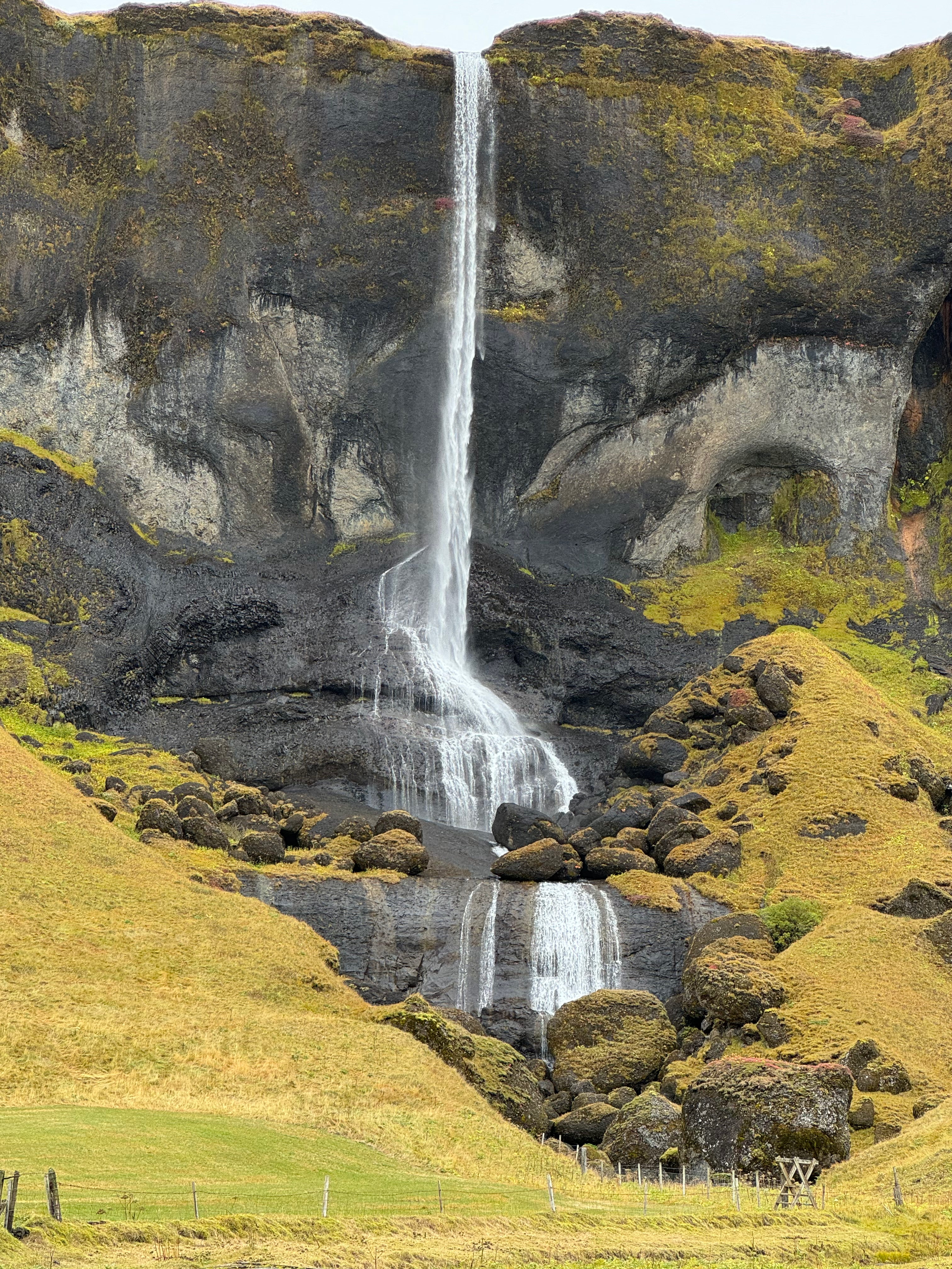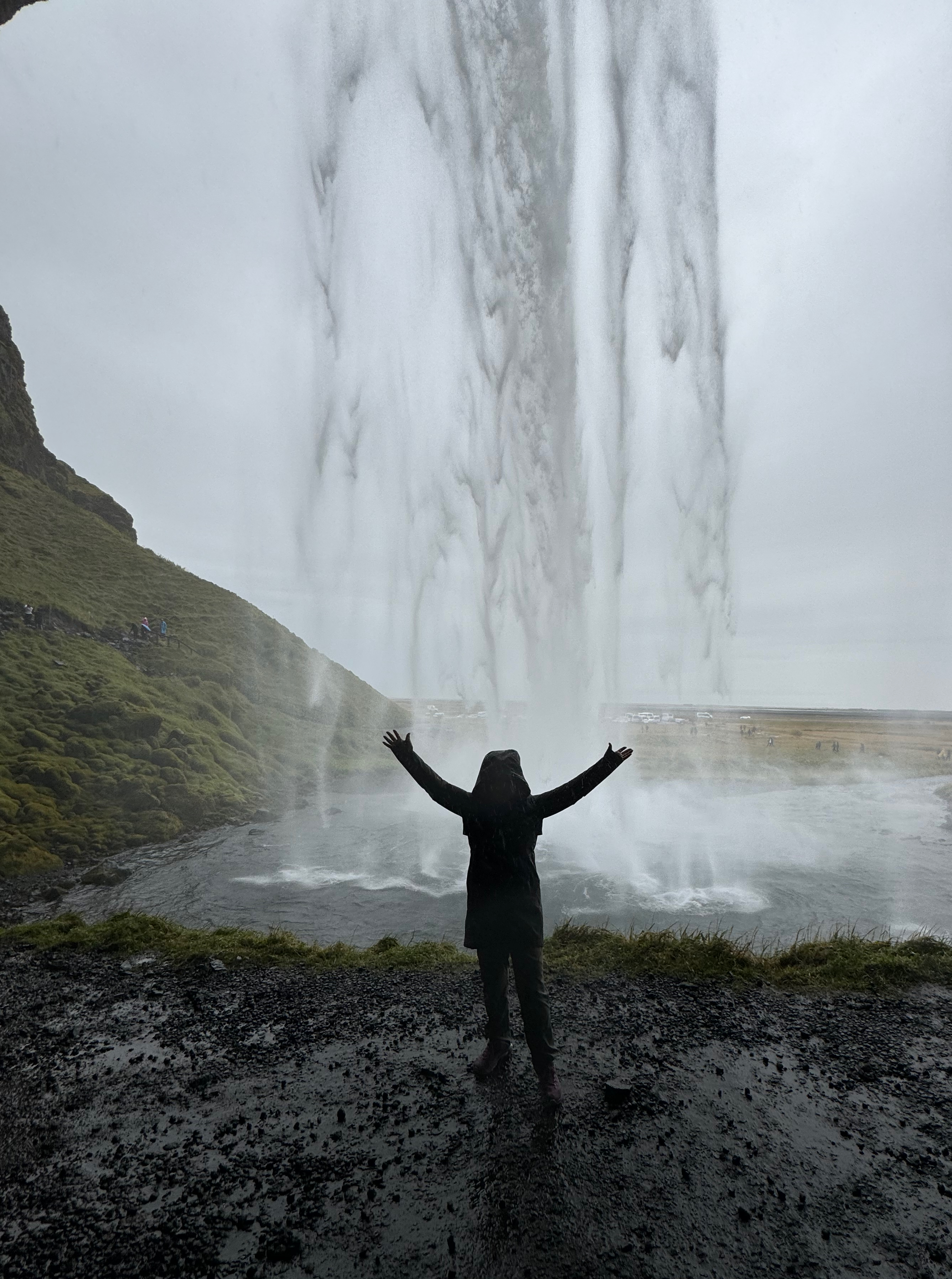 I will share this last stop of the day at Seljalandsfoss. It was raining so heavily that we all spontaneously started singing together “Singing in the rain! Just singing in the rain…” as we climbed off the bus in our many shapes and shades of rain gear. Collectively we actually made it through two verses.