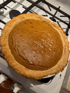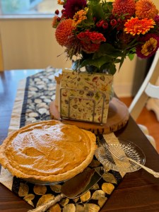 This year we all participated in a pumpkin pie tasting. I baked one Chiffon pumpkin pie, using my mother’s hand-written recipe, and two Classic pumpkin pies using my own recipe. It probably originated in a cookbook somewhere, but has evolved over time as I have made it my own. I just know how to make it now – no need to look anything up.